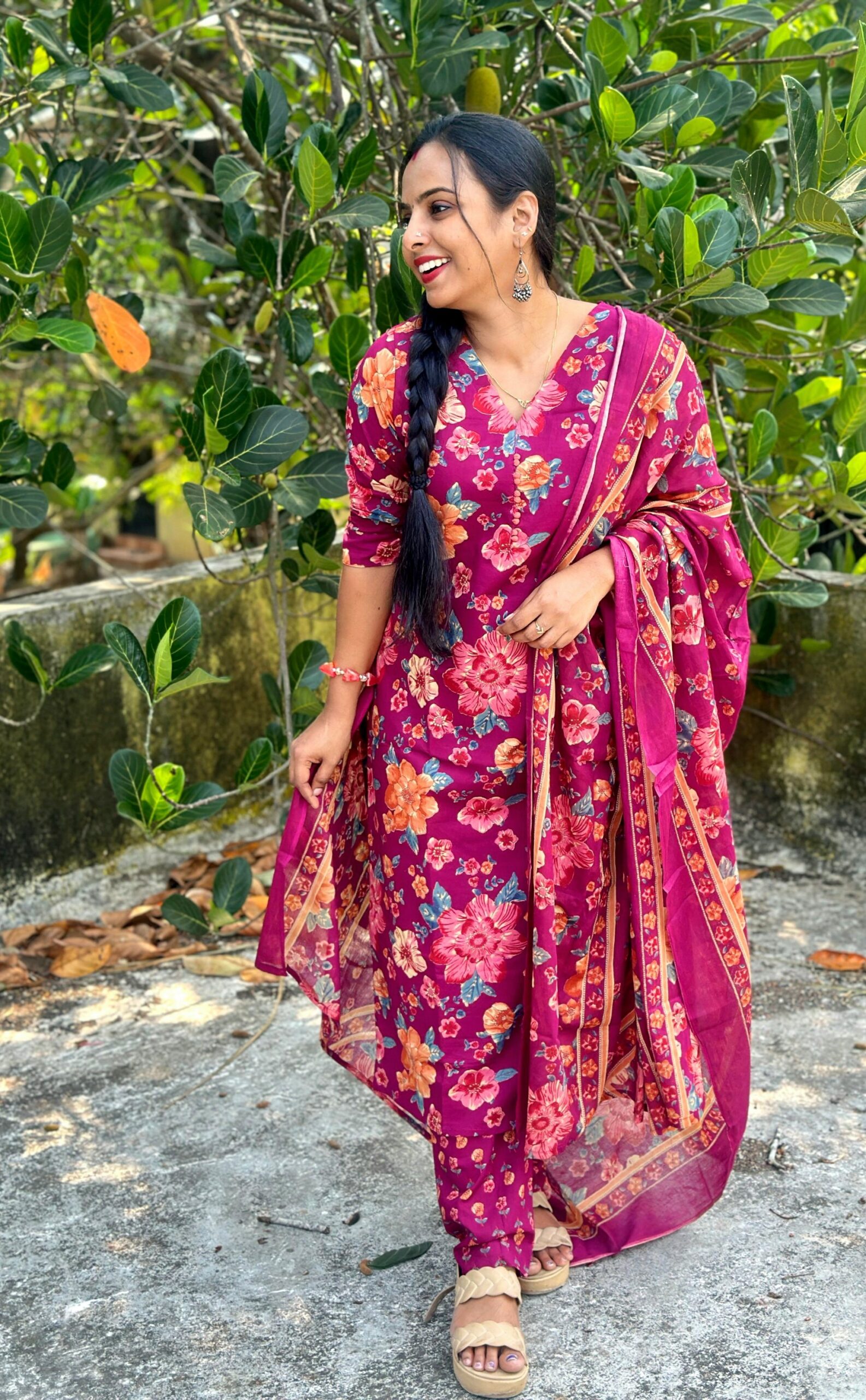 Be the first to review “Cotton Floral Printed Slit Kurti With Bottom And Duppatta (Purple)” Cancel reply