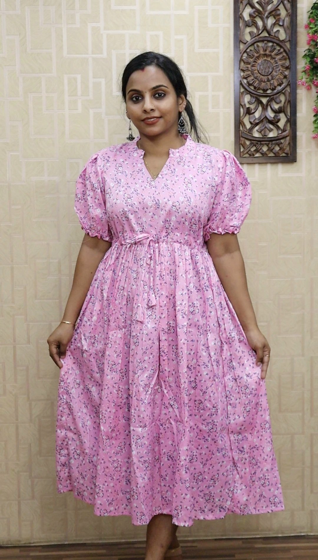 Delta Printed Frock (Baby Pink)