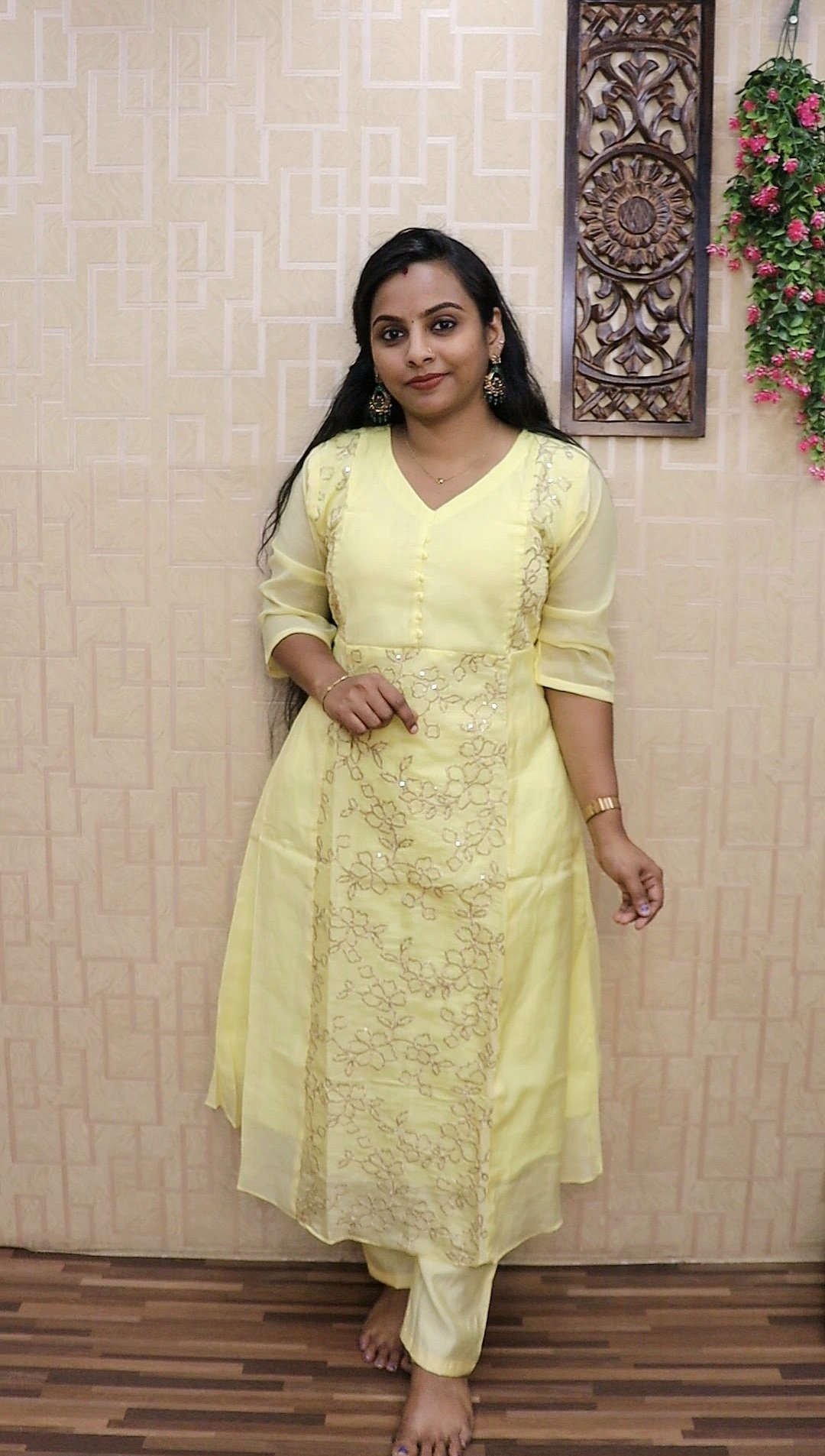 Partywear Mulchanderi Cord Set (Baby Yellow)