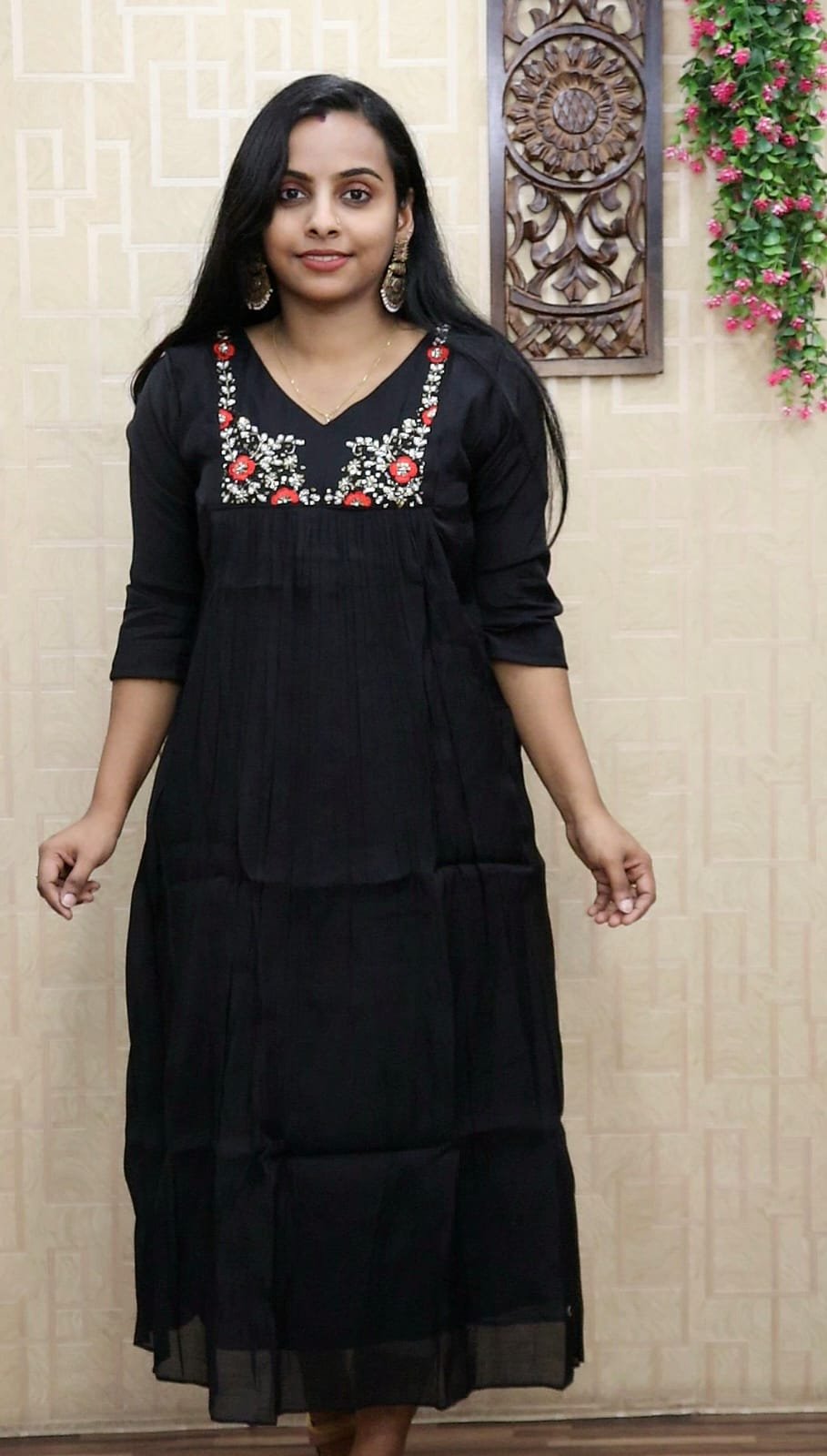 Be the first to review “Premium Mul Chanderi Front Pleated Aline Top (Black)” Cancel reply