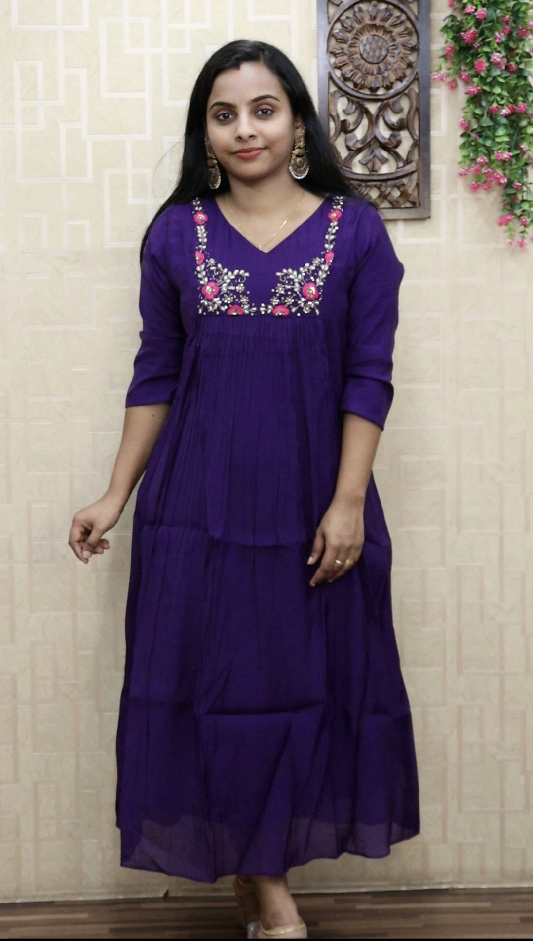 Be the first to review “Premium Mul Chanderi Front Pleated Aline Top (Violet)” Cancel reply