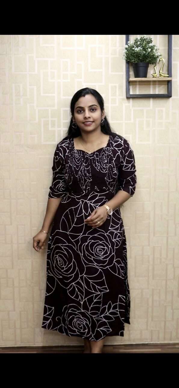 Rayon Printed Aline Feeding Kurti (Coffee Brown)