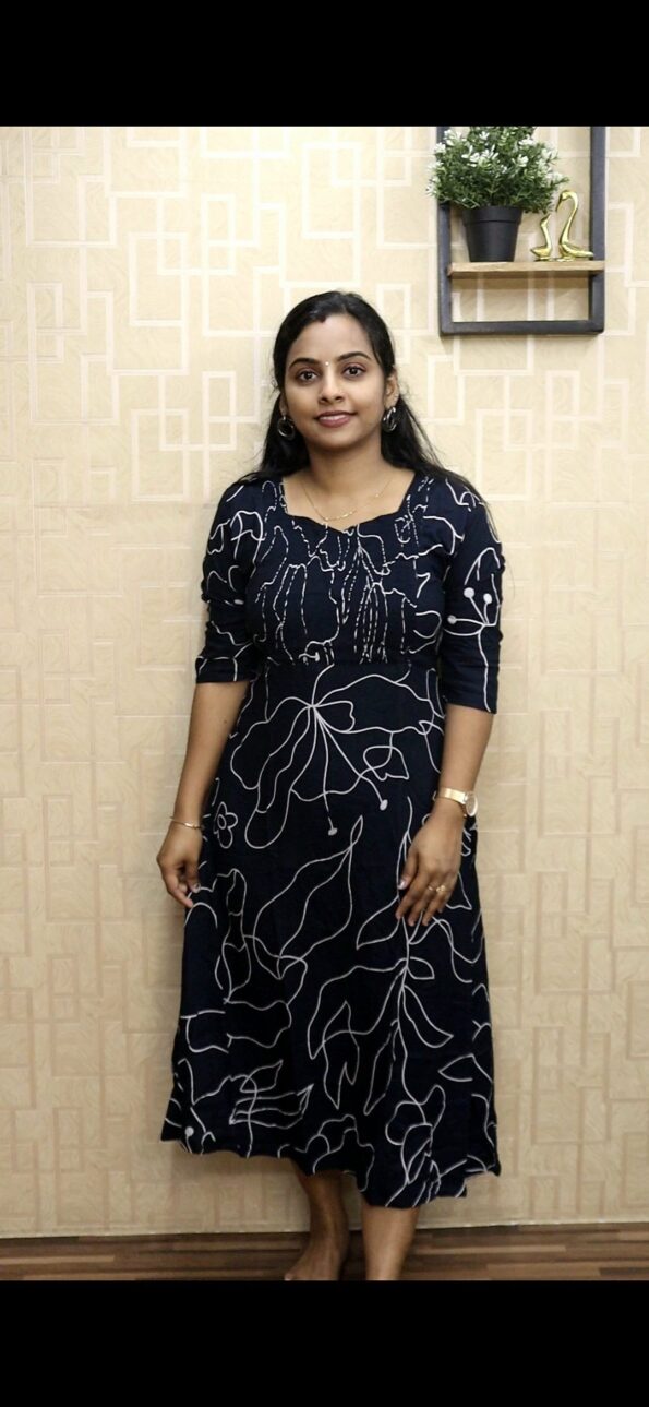 Rayon Printed Aline Feeding Kurti (Navy Blue)