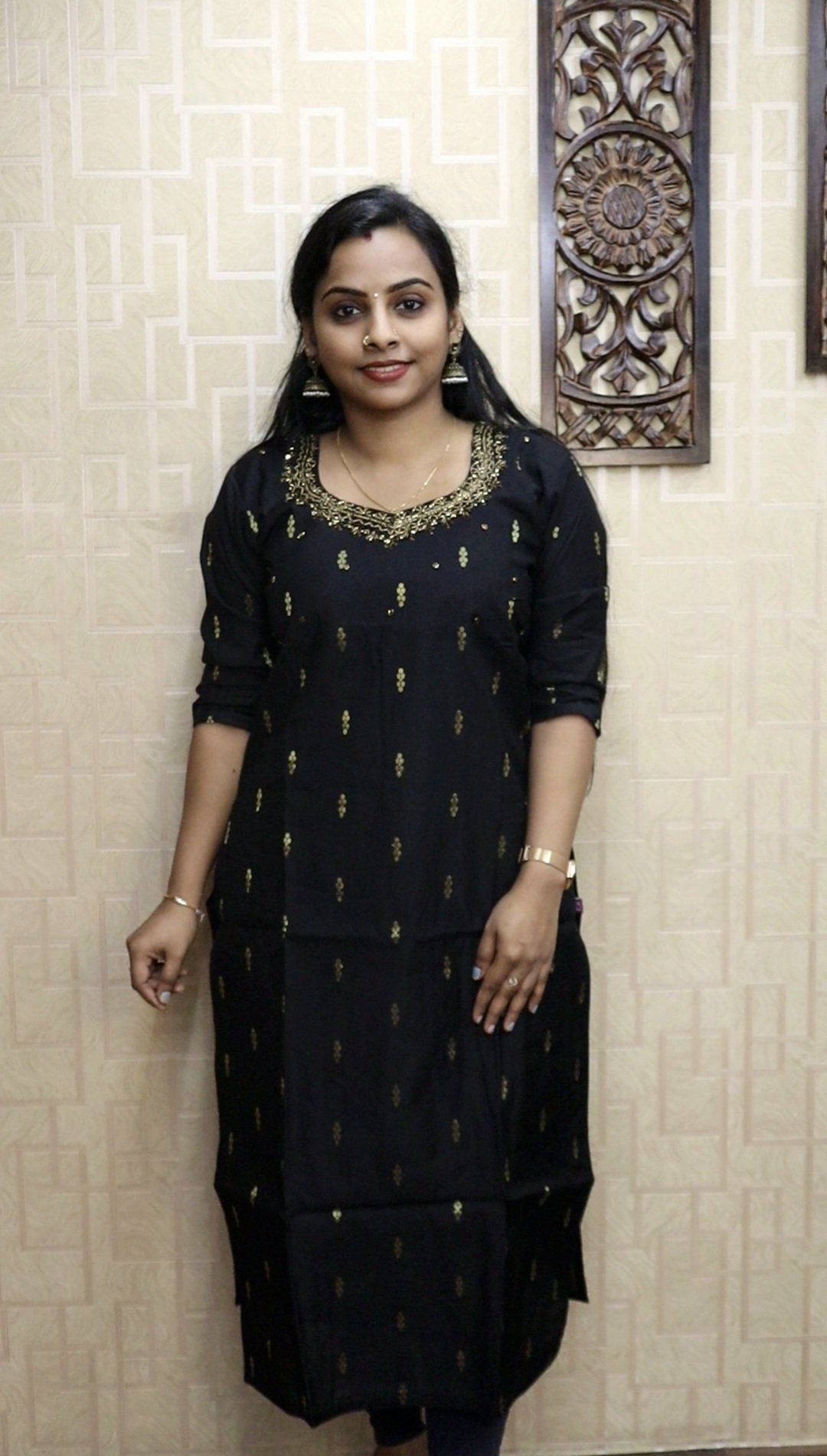Slub Cotton Silk Handworked Slitted Kurti (Black)