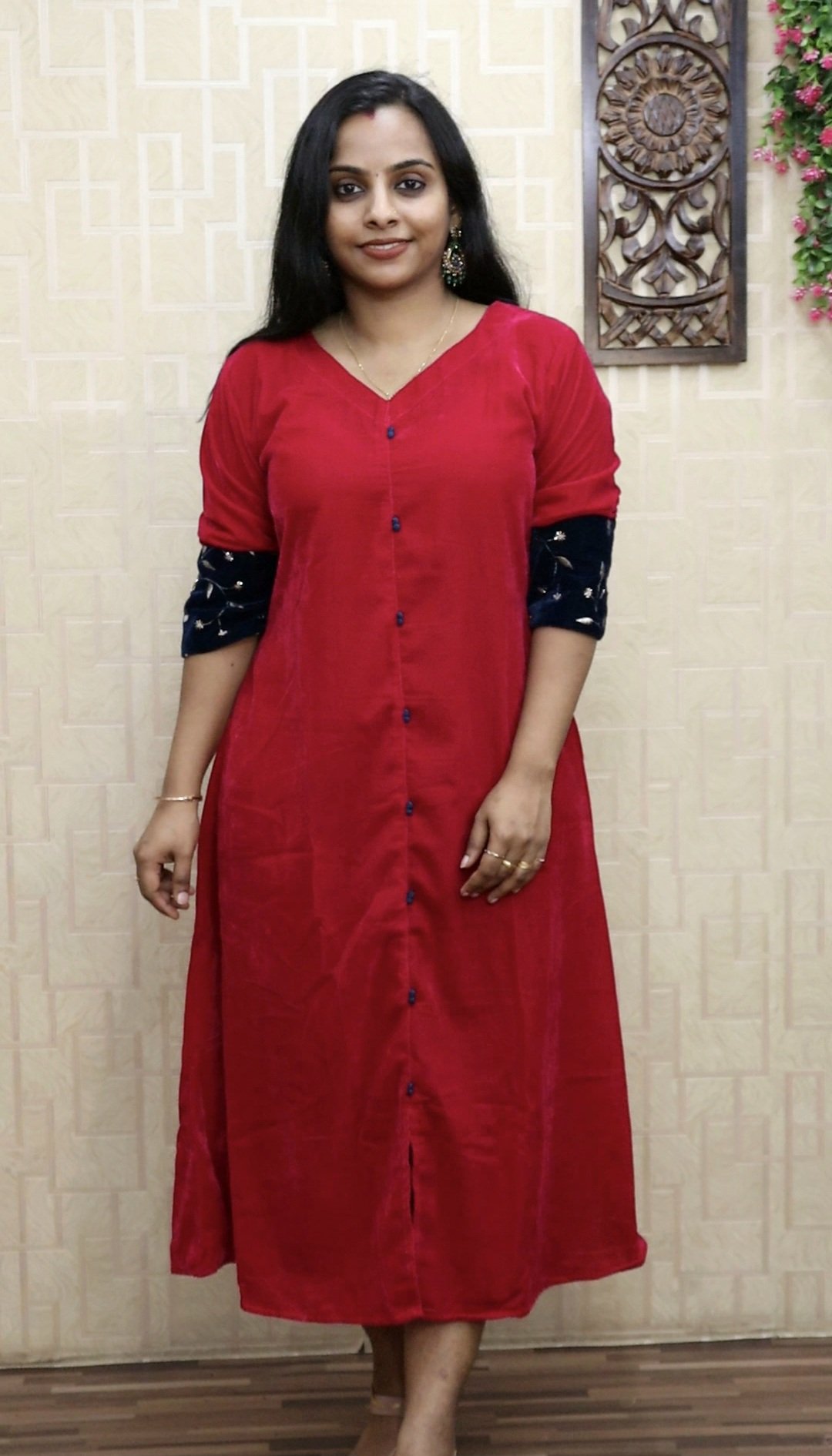 Velvet Aline Kurti (Pink)