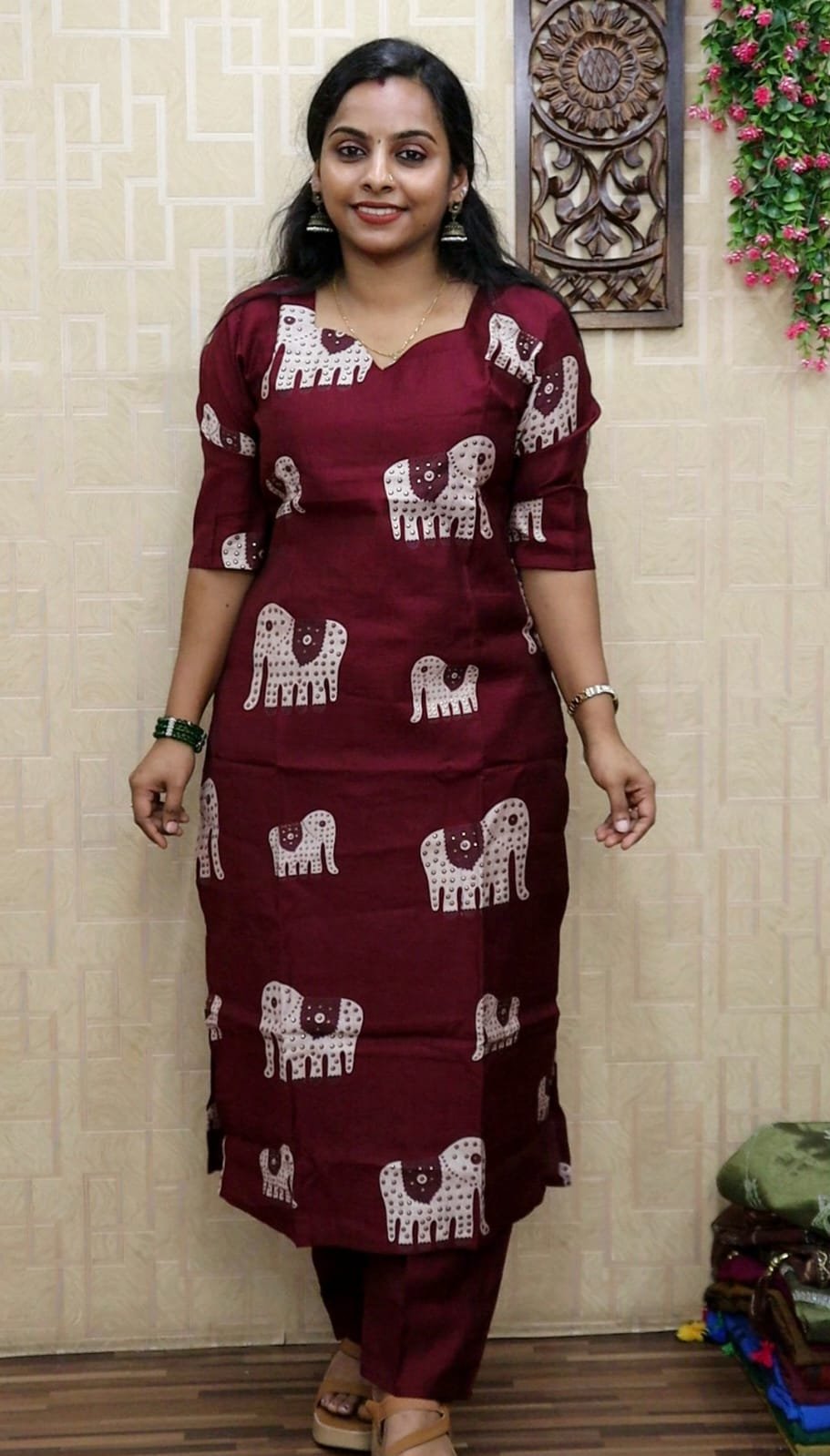 Vetican Silk Elephant Print Cordset (Dark Meroon)