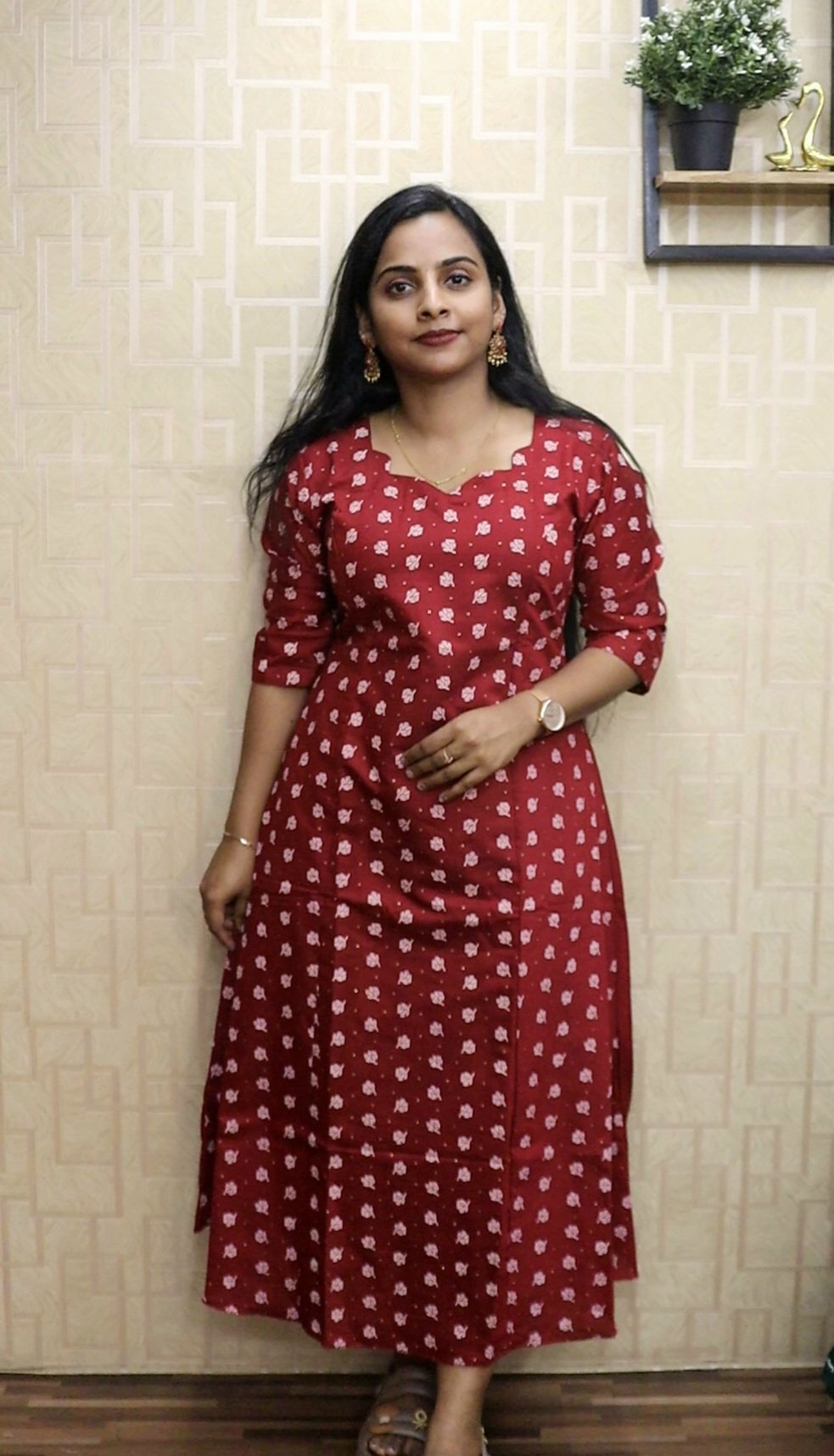 Vetican Silk Princess Cut Aline Kurti (Reddish Meroon)