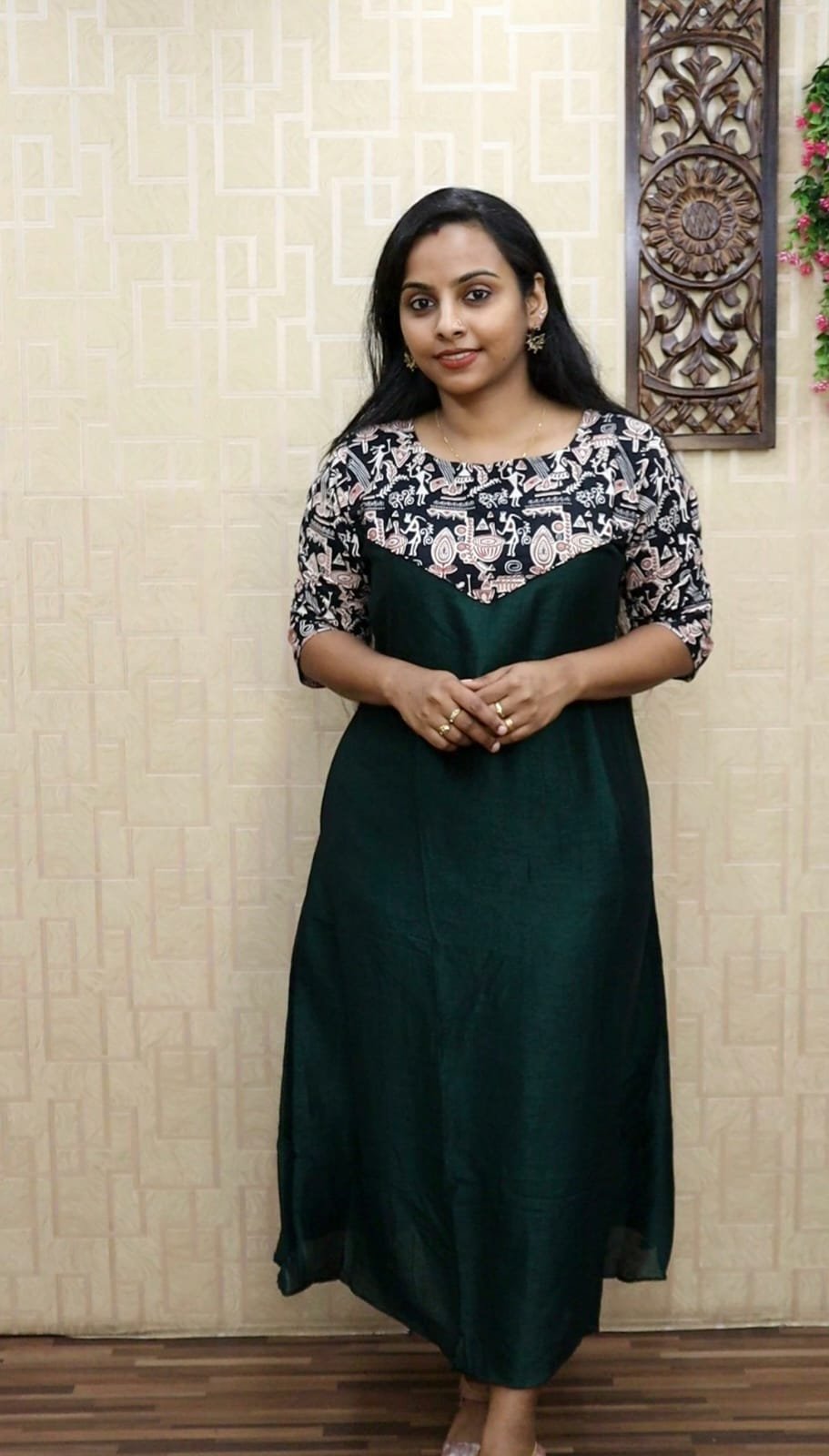 Be the first to review “Vichitra Silk Aline Kurti With cotton patch (Green)” Cancel reply